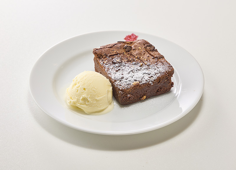 チョコレートを使⽤した、⽢く、ほろ苦いケーキ。しっとりとした⾷感をお楽しみください。