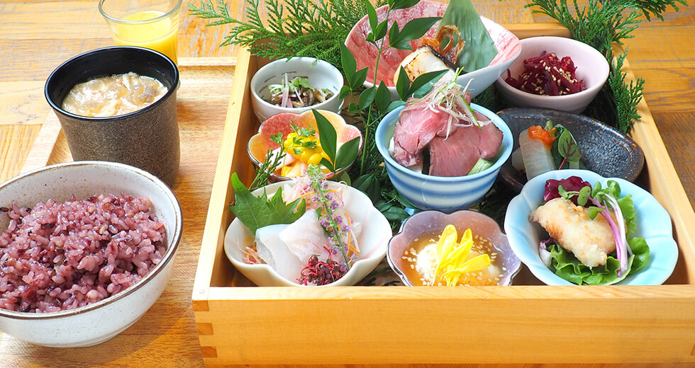 Centered on the theme of “a healthy, natural choice,” this is a beer kitchen where you can enjoy a menu that is not only delicious but good for you. For lunch, this restaurant serves a lunch set with soup and a choice of six sides, presented in the “OBON” style. For dinner, it offers an abundance of baked a la carte meals such as beef and vegetables, complemented by craft beer.